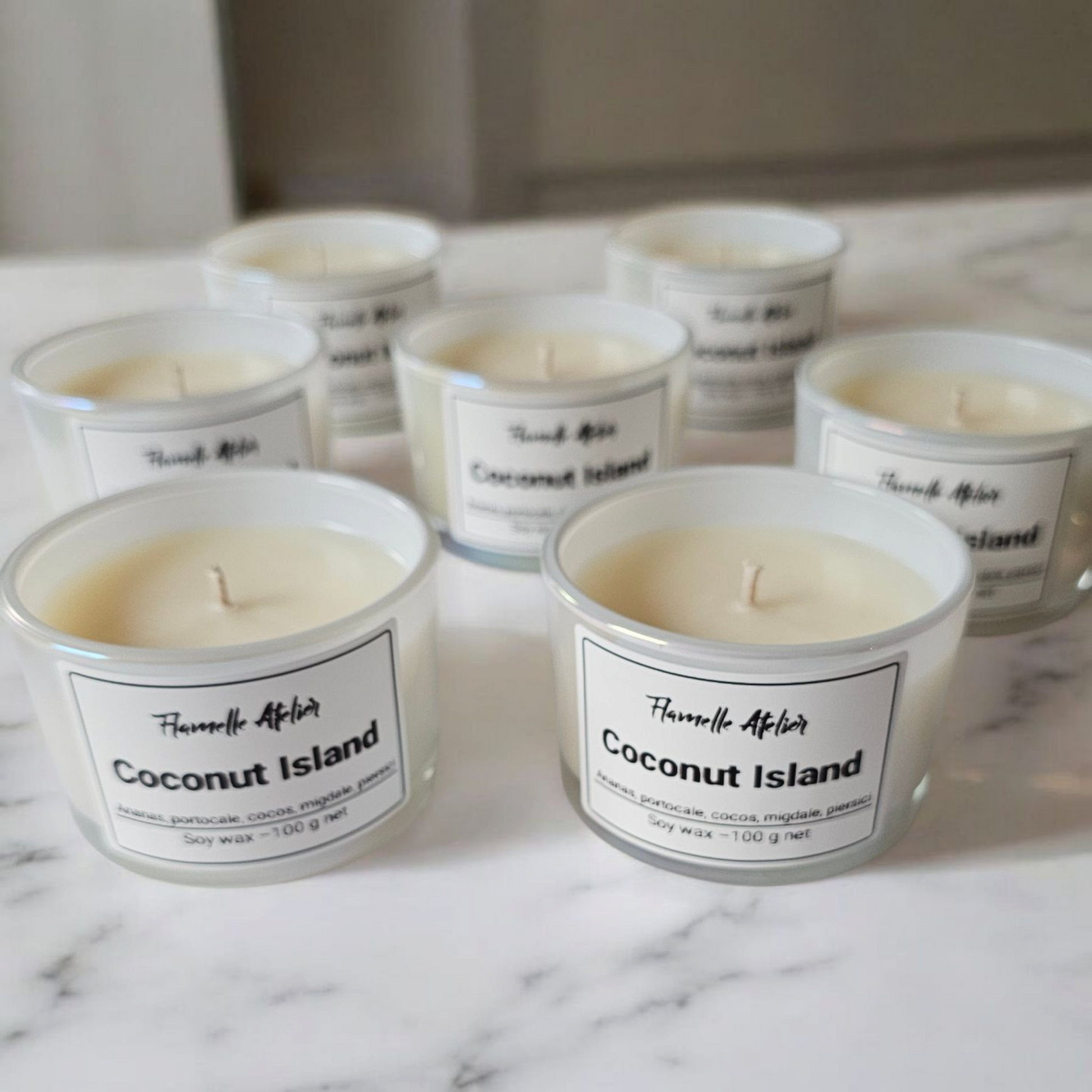 Lumânarea conține 100 de grame de ceară naturală de soia, fitil de bumbac cerat, ulei parfumat.