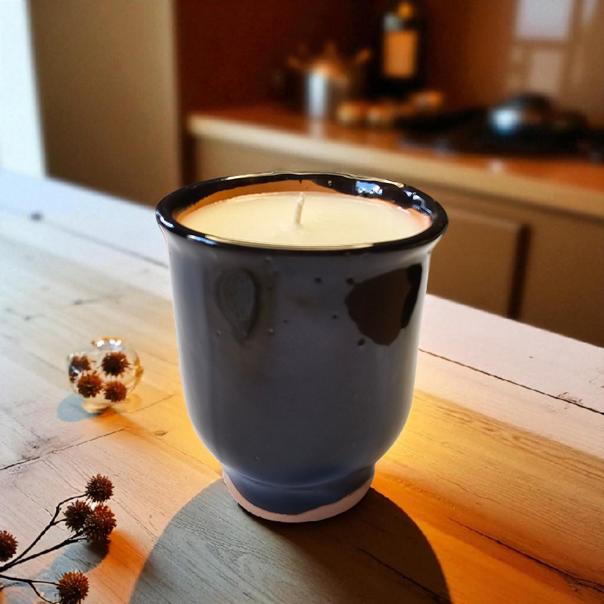 O lumânare simplă, dar caldă, ușor rustică, care te invită să îți iei timp pentru tine, alături de cafeaua de dimineață, o carte, sau filmul preferat.